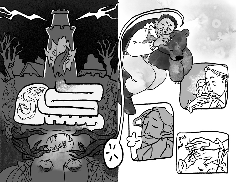 Comic reimaging of a scene from The Dybbuk on Orchard by Marilyn Schotland